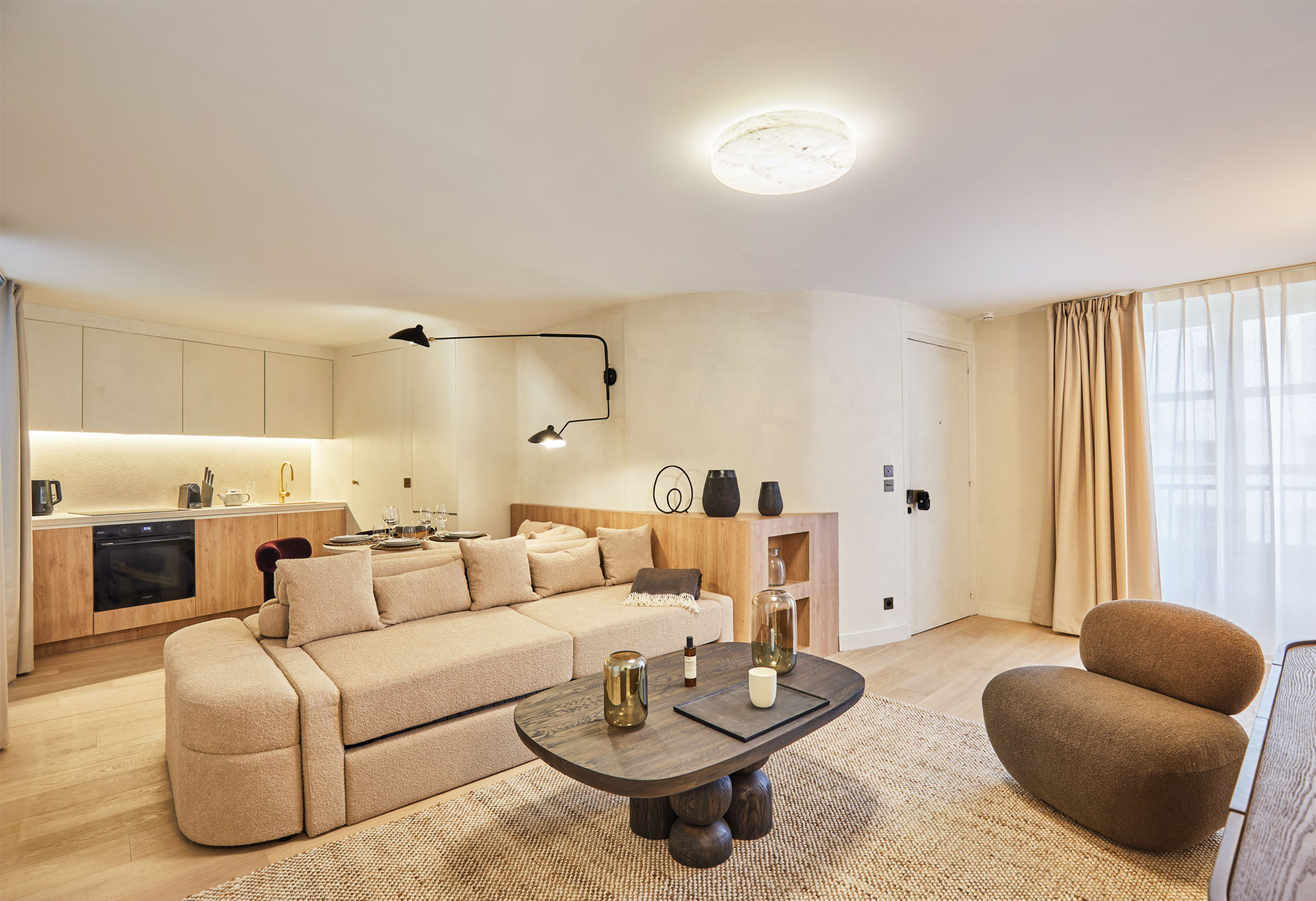 Entièrement neuf : Notre appartement a été récemment rénové et décoré par des professionnels de renom pour offrir un espace luxueux et moderne.